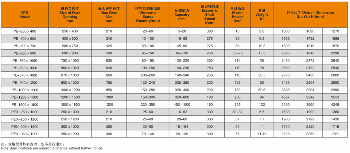 PE系列顎式破碎機(jī)具有破碎比大、產(chǎn)品料度均勻、結(jié)構(gòu)簡(jiǎn)單、工作可靠、維修簡(jiǎn)便、運(yùn)營(yíng)費(fèi)用經(jīng)濟(jì)等特點(diǎn)。顎式破碎機(jī)廣泛用于礦山、冶煉、建材、公路、鐵路、水利和化學(xué)工業(yè)等眾多行業(yè),破碎搞壓強(qiáng)度不超過320兆帕的各種物料,是初級(jí)破碎的首先設(shè)備